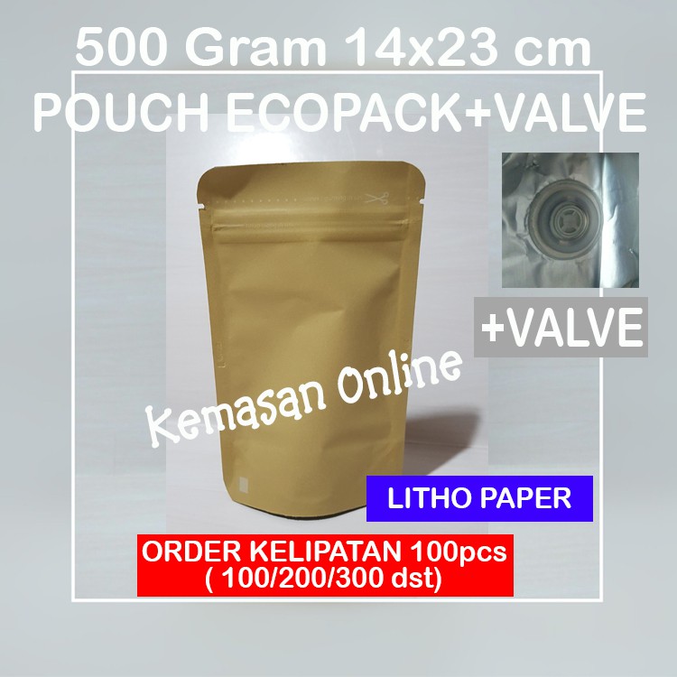 Name: (14x23cm) Kemasan Kopi 200-250gr Standing Pouch Alumunium Foil Ecopack Litho 500gr+ziplock+valve