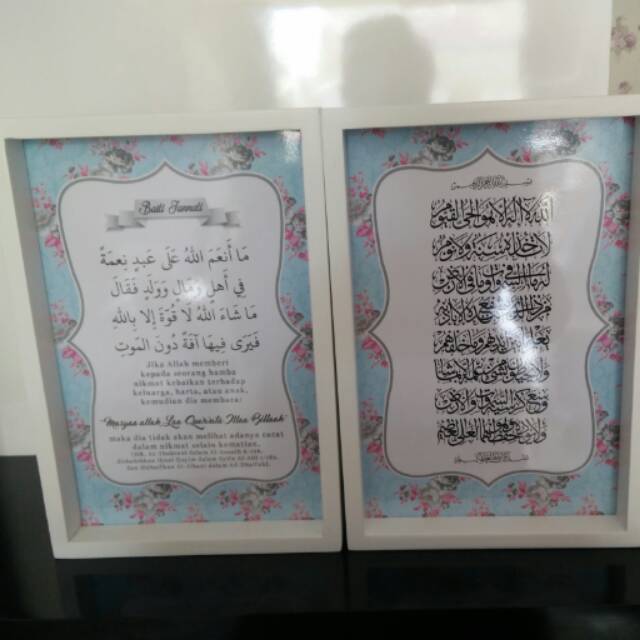 Kaligrafi ayat kursi dan baiti jannati shabbychic warna baby blue uk