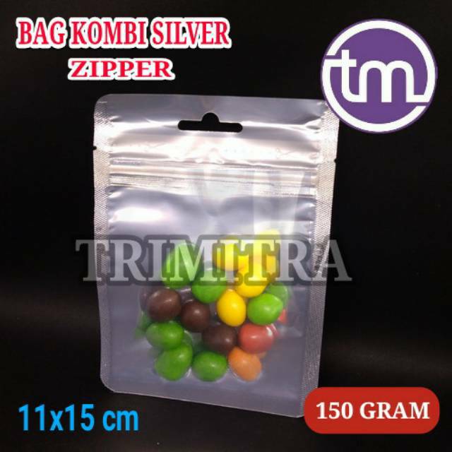 ALUMINUM FOIL SILVER KOMBINASI PLASTIK BENING DENGAN KLIP ZIPPER