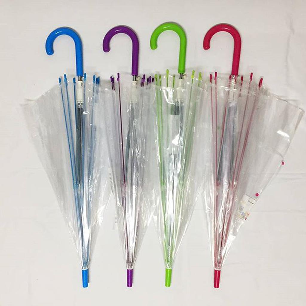 Payung tongkat transparan berkualitas dengan gagang dan kerangka warna warni.