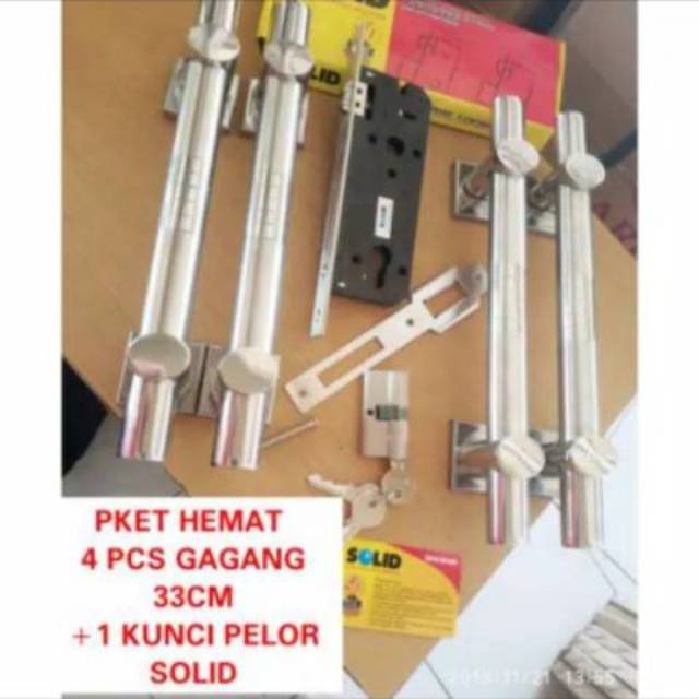 Paket kunci pintu kupu2/pintu 2 komplit, terdiri dari 1 set komplit kunci pelor bahan stanlis steel+4 pcs/2 set pull handle panjang 33cm berbahan stanlis tebal #pullha